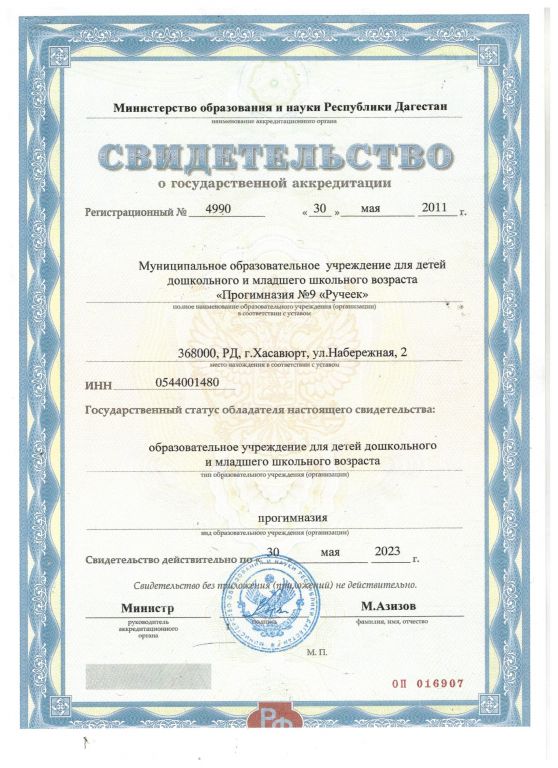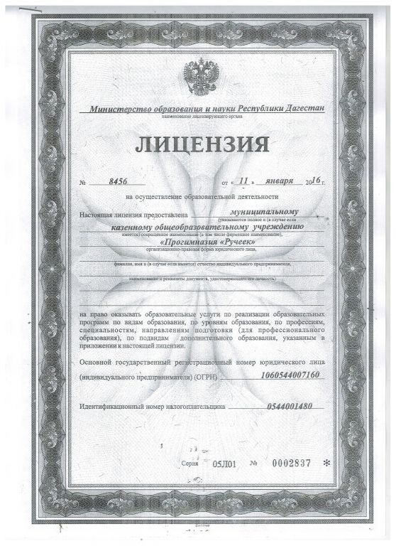 | Полное наименование образовательной организации* | Муниципальное казённое общеобразовательное учреждение для детей дошкольного и младшешкольного возраста прогимназия "Ручеёк" |